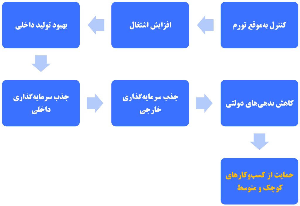 در این صورت و با درایت جمعی فعالان اقتصادی در بخش‌های مختلف اقتصادی اعم از دولتی و یا بخش خصوصی، می‌توان به نجات اقتصادی متمركز شد و سیاست‌های نمودار شماره (3) را دنبال نمود.