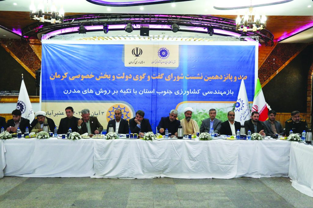 برگزاری نشست شورای گفت وگوی دولت و بخش خصوصی با موضوع «بازمهندسی کشاورزی جنوب استان کرمان با تکیه بر روشهای مدرن» در عنبرآباد