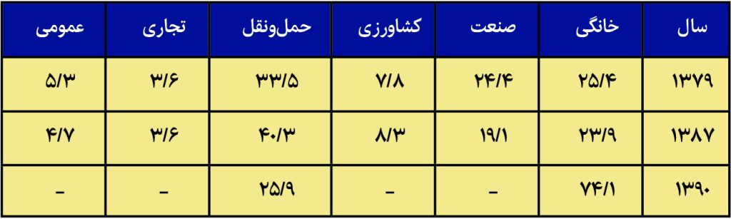جدول شماره (1): مقایسه سهم بخش های مختلف از یارانه انرژی (مأخذ: ترازنامه انرژی، 1390)